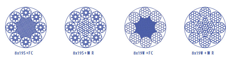 繩結(jié)構(gòu):8×19S+FC 8×19S+IWR 8×19W+FC 8×19W+IWR